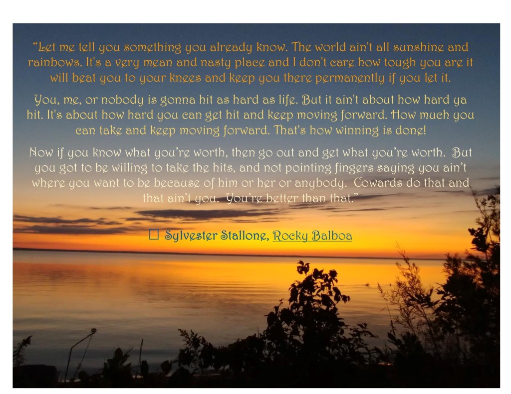 I love this Rocky quote because it relates so much to my own life. It’s easy to give up. It’s easy to let other things get in the way of writing, get in the way of what is most important in life but we can’t let it. It isn’t about failing NaNoWriMo, it’s about whether or not I kept going despite knowing I was likely going to fail because of a tight schedule. It’s about still writing, despite the setbacks and the failures I will face.