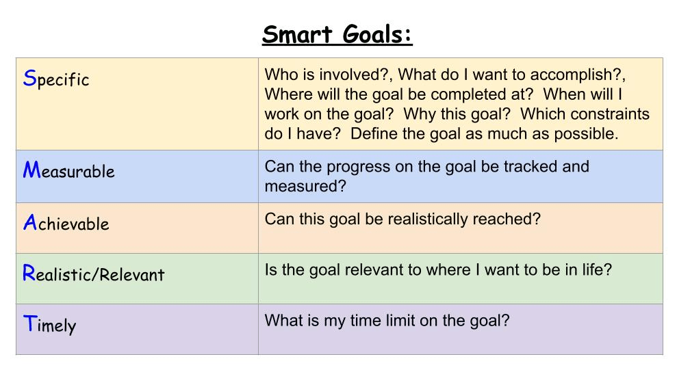 - Create SMART Goals! SMART Goals are:
